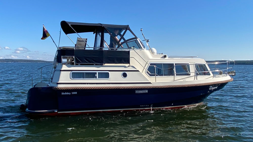 Die Holiday 1.000 "Diara" ist das optimale Schiff für Paare, oder kleine Familien. Die äußerst großzügig geschnittene Achterkabine und der extra Duschraum bieten 2 Personen gehobenen Komfort und reichlich Platz. Mit 9,80 m Länge sehr kompakt, dennoch bietet das Schiff viel Lebensraum an Bord. Durch die kraftvollen Bug- und Heckstrahlruder lässt sich das Boot jederzeit gut manövrieren.