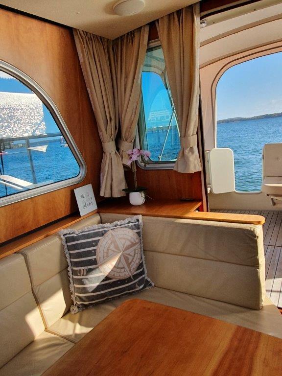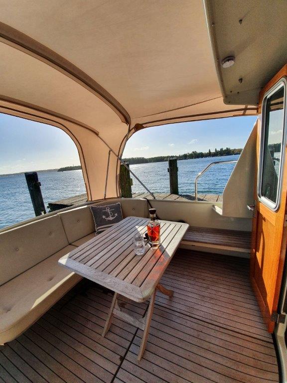 Außen besticht die „Luise“ durch ein breites Gangbord und eine Rundum-Reling. Die hochwertige und durchdachte Ausstattung, macht die „Luise“ zur idealen Motoryacht für 2 Personen. Die Salonsitzbank kann mit dem „Easy Sleep Convert System“ zum Doppelbett umgebaut werden.