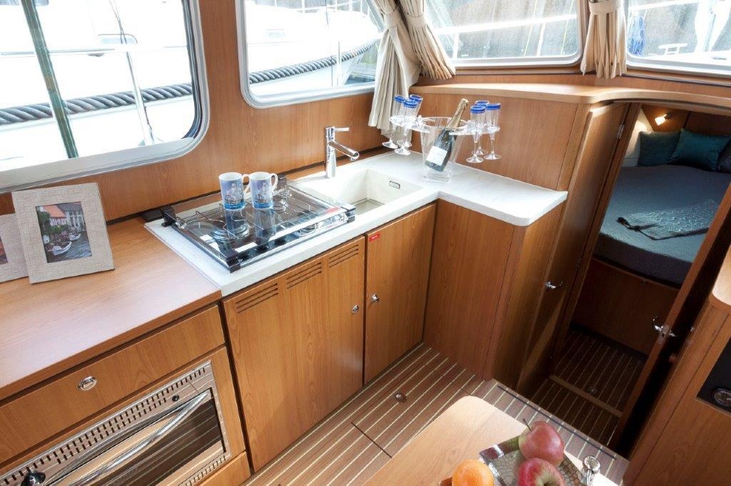 Das Boot läuft äußerst vibrationsarm und bietet ausgezeichneten Komfort für 4 Personen. Wenn Sie mit 6 Personen reisen, kann Dank des Linssen Easy Sleep Convert System®, die Sitzbank im Salon jederzeit zum bequemen Doppelbett umfunktioniert werden.