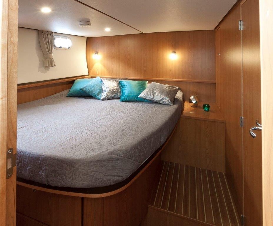 Linssen Motoryachten der „AC“ (Aftcabin) Baureihe zeichnen sich trotz der noch kompakten Maße durch ihre Geräumigkeit mit zwei Kabinen aus.