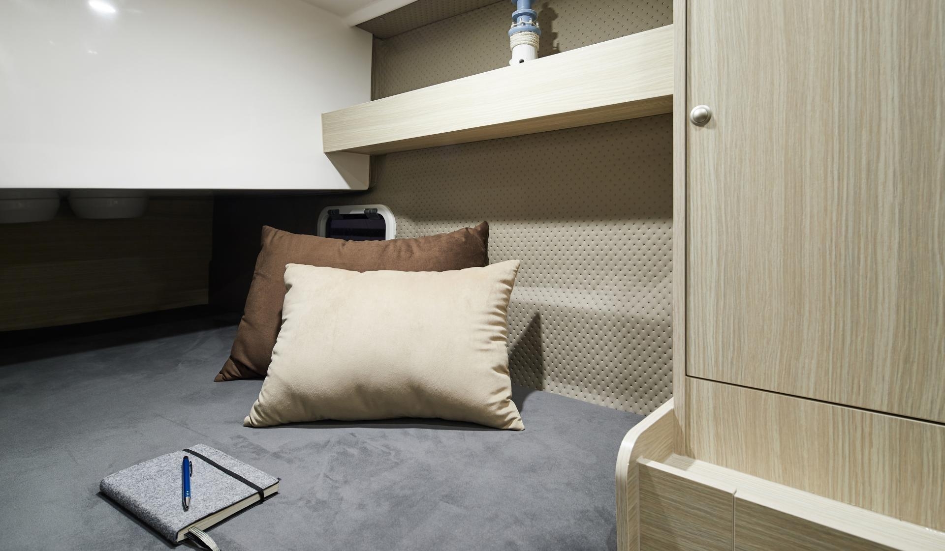 Bei der Nexus Revo 870 Electric handelt es sich um eine Elektroyacht mit 8,70 m Länge mit 2 Kabinen und max. 4 Schlafplätzen! (Auf Grund der kompakten Größe des Bootes empfehlen wir die Belegung mit nur 2 Personen)