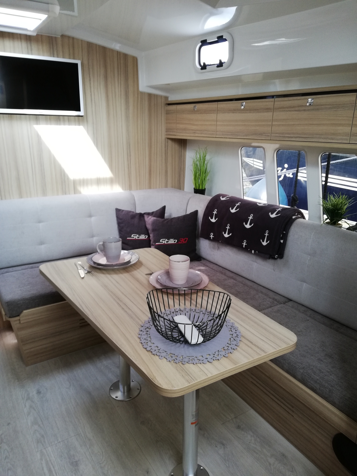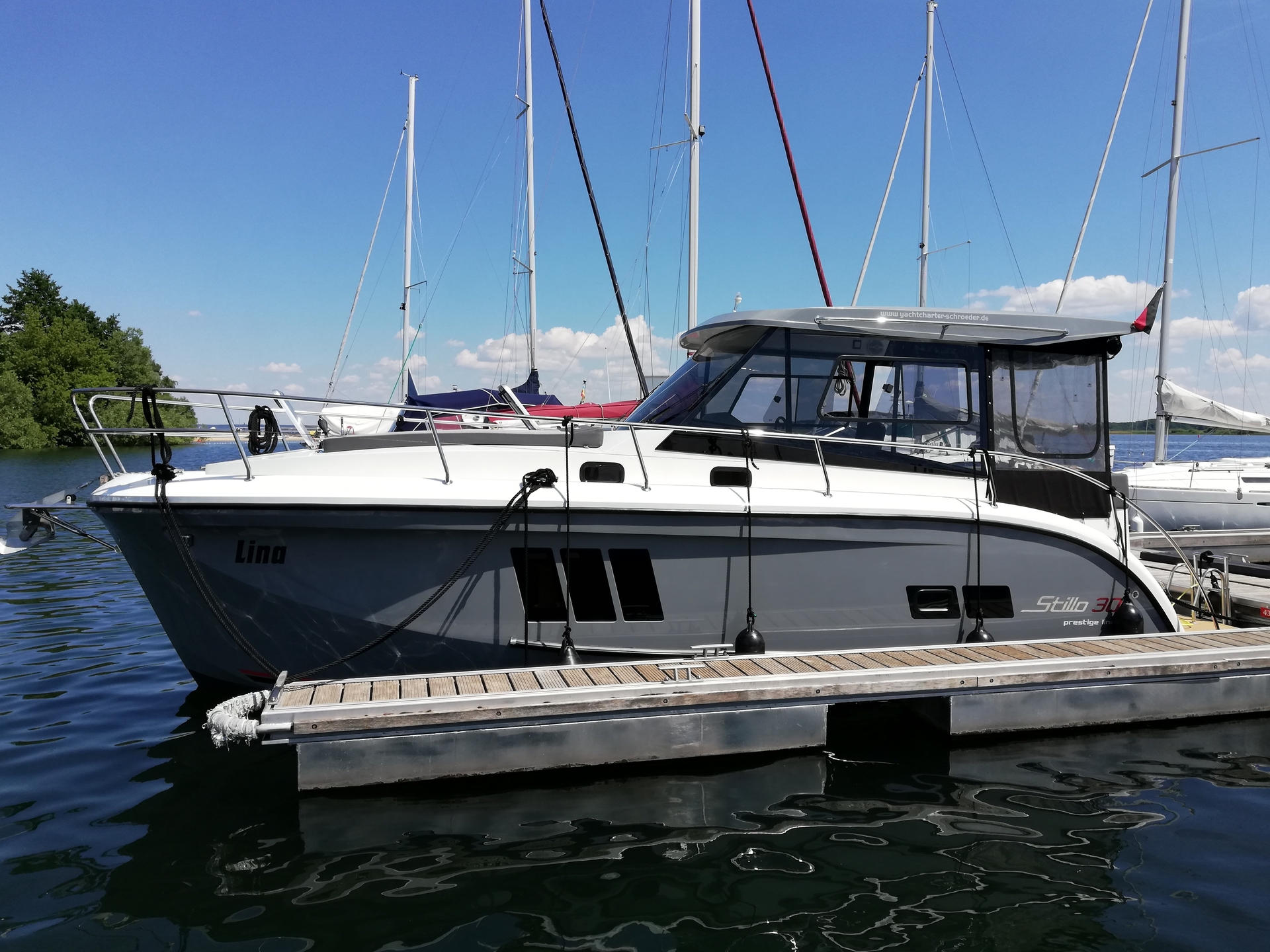 Unsere sehr komfortabel ausgestatteten kompakten Raumwunder, die 30er Stillo´s „Lina“ „und „Michel“ Die Innenausstattungen der beiden Motoryachten sind nahezu identisch. Das ideale Boot für 2 – 4 Personen. Auf nur 9,10 m Länge finden 4 Personen reichlich Platz zum Wohnen und Schlafen.