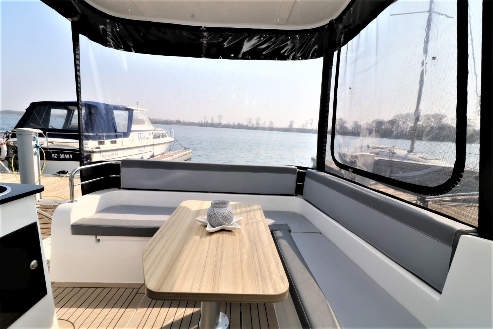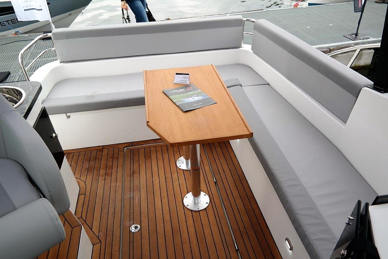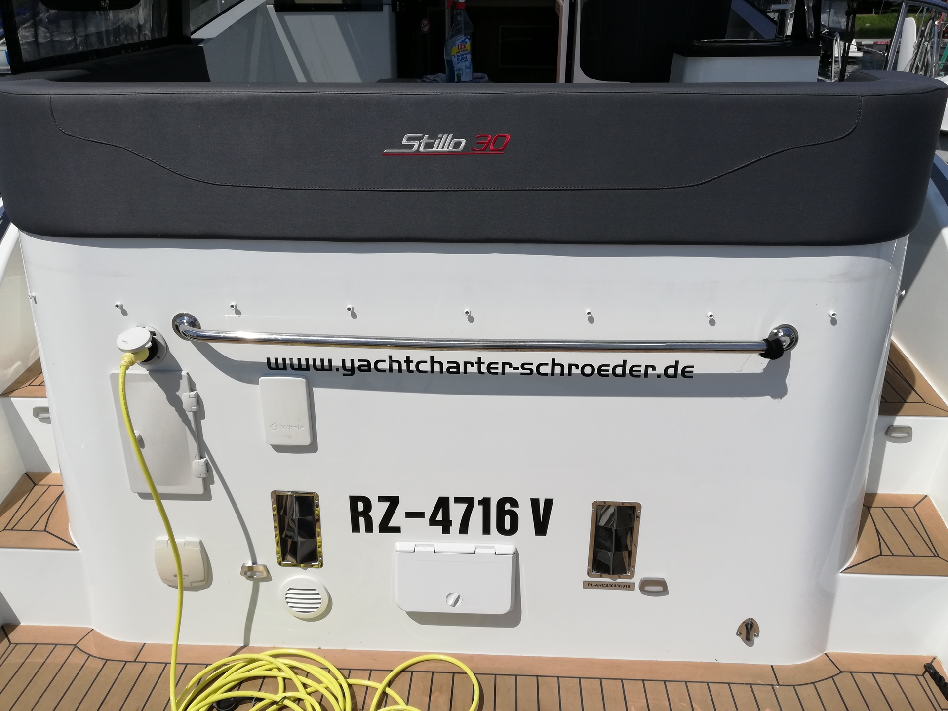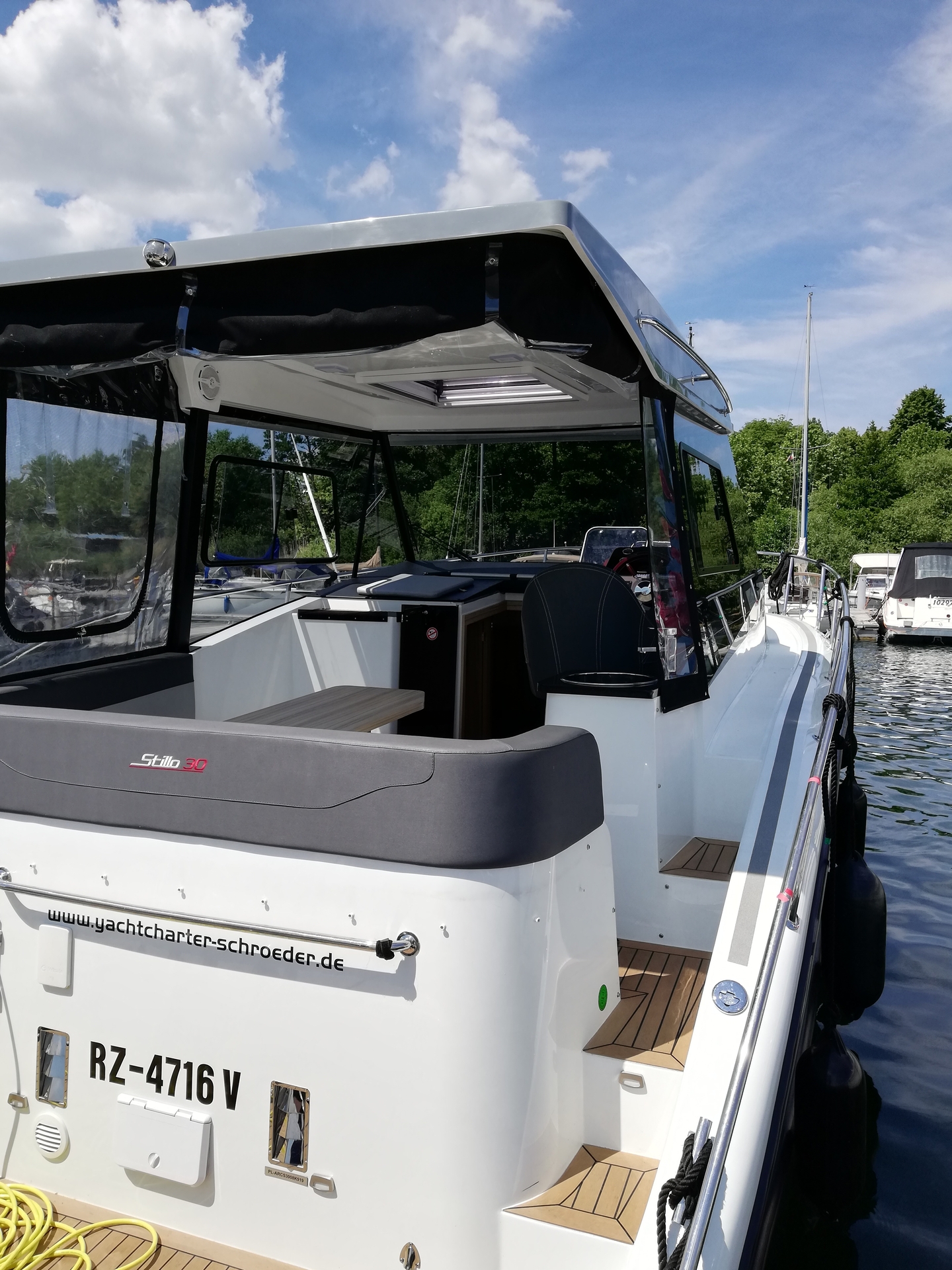 Über die große Badeplattform gelangt man bequem an Bord. Die breiten Gangborde ermöglichen einen sicheren Gang auf das Vorschiff. Die Stillo 30 ist ausgestattet mit einer verschließbaren Persenning, somit kann das Cockpit je nach Wetterlage luftig frisch, oder mollig warm gehalten werden.